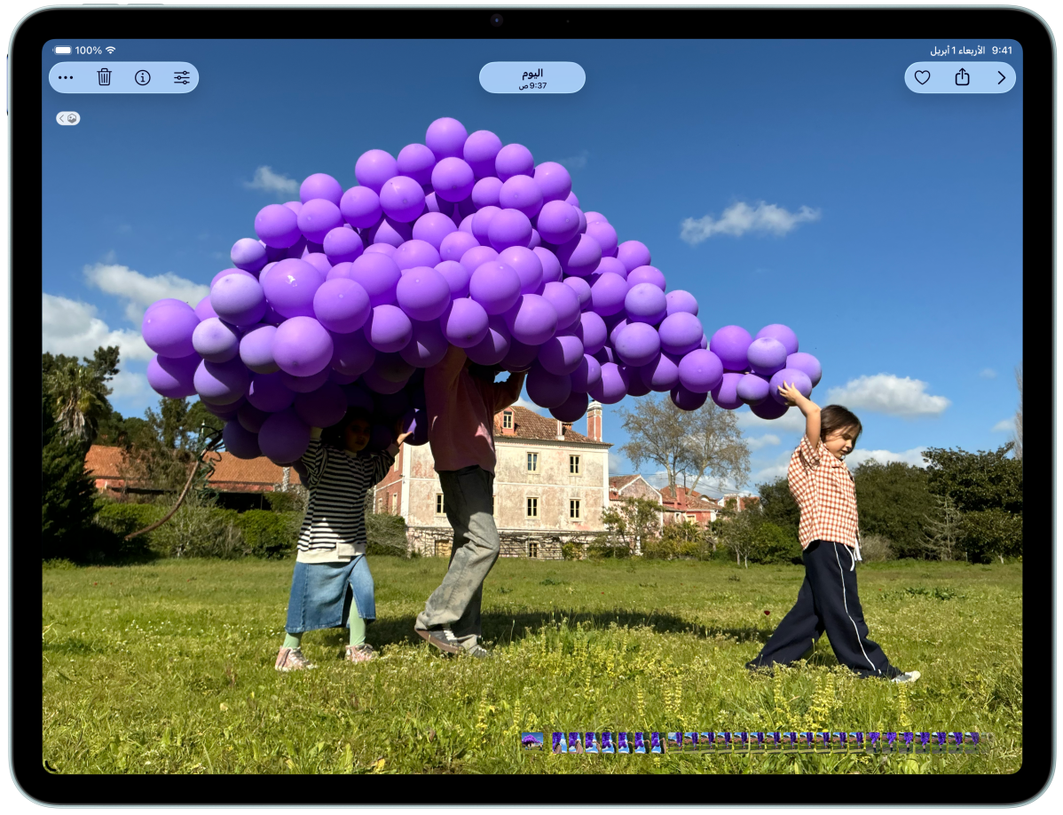 شريحة M4 فائقة السرعة مع ذاكرة نظام موحدة أكبر بنسبة 50 بالمئة ترتقي بالأداء لإنجاز كل ما تحب على iPad Air، فطاقتها الهائلة تطلق العنان لميزات الذكاء الاصطناعي وقدراته التي تستخدمها كل يوم لتنجز المطلوب بسرعة أكبر من دون جهد يذكر. ومع بنية وحدة معالجة رسومات الغرافيك، ستستمتع برسومات غرافيك متطورة أكثر سلاسة في كل ما تقوم به من عمل وإبداع ولعب ومشاهدة. أما البطارية فتواكبك طوال اليوم بكل طاقتها وكفاءتها.4