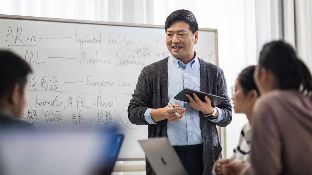 Les élèves y apprennent à coder avec Swift et donnent vie à leurs idées sous forme d’apps. Xiaoguang Song, responsable des TI et professeur agrégé, complète leur apprentissage avec des cours d’introduction à la programmation dans Xcode, si bien qu’ils et elles atteignent rapidement un niveau professionnel.