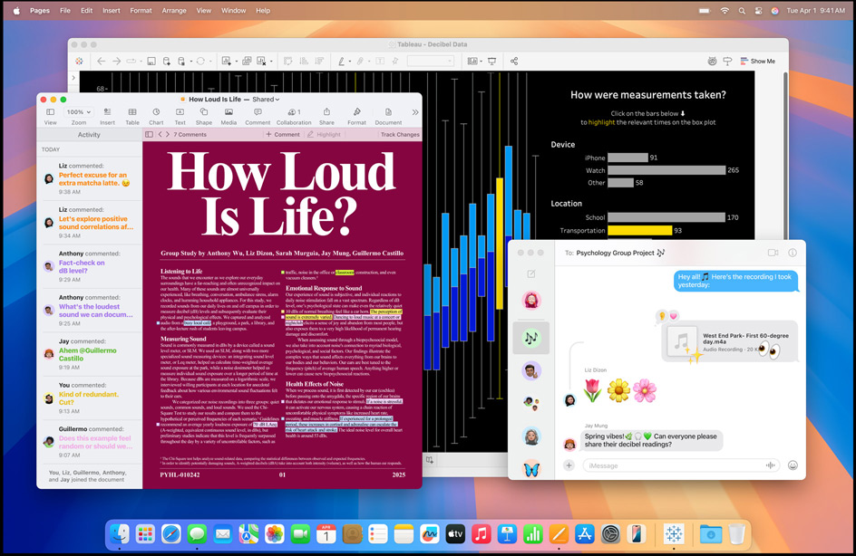 Multitâche dans Pages, Tableau et Messages sur Mac