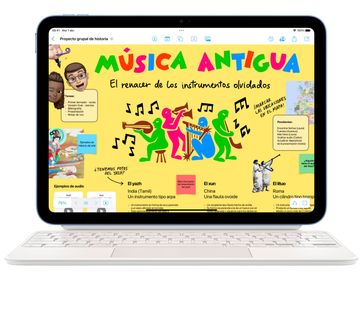 El iPad es un estudio de grabación portátil. Tiene micrófonos de alta calidad y parlantes estéreo en horizontal. Graba un podcast, mezcla un tema o ponles música a tus videos. Suena bien, ¿no?