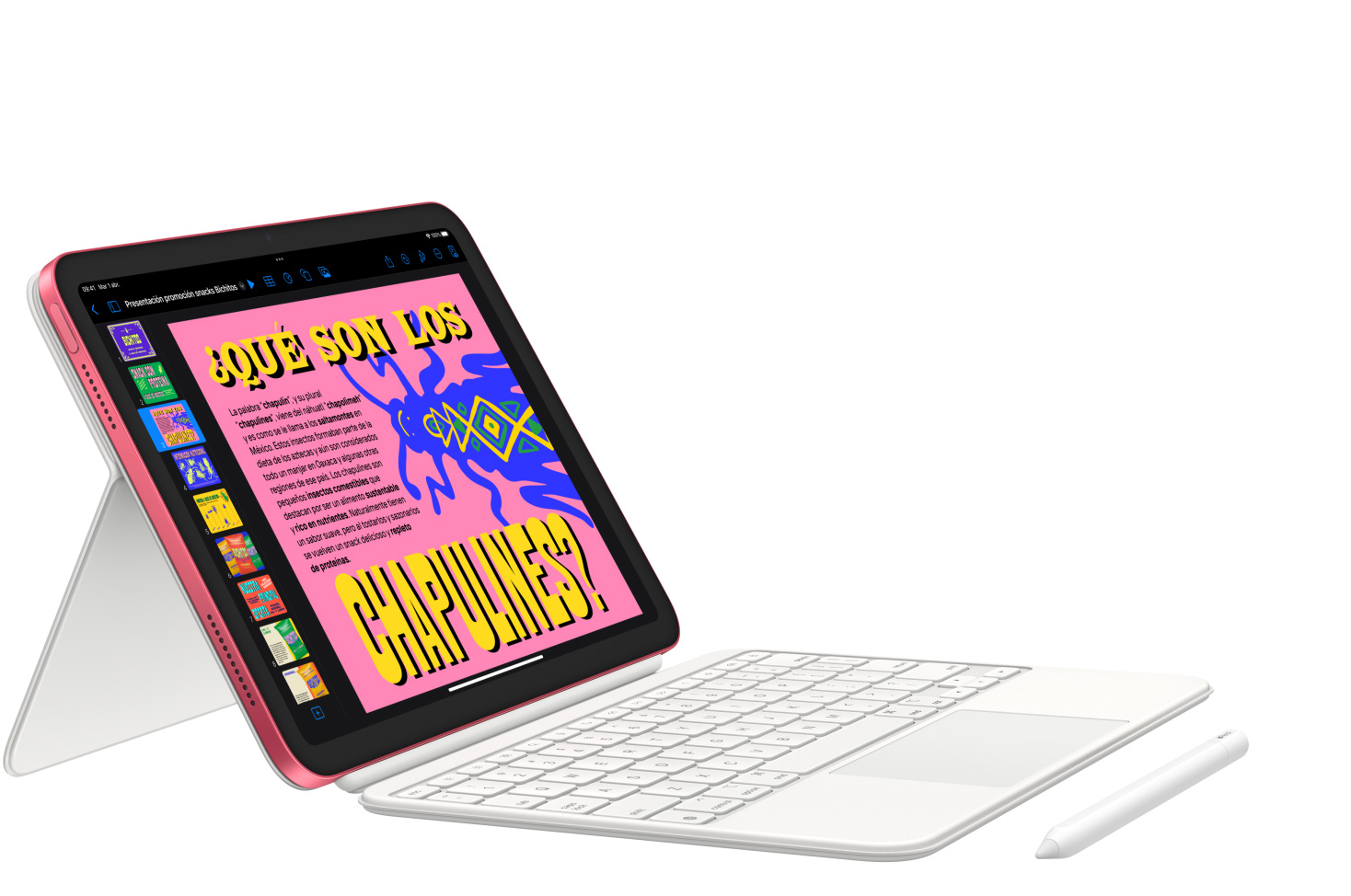 Edita una hoja de cálculo, termina una presentación de Keynote y toma apuntes sobresalientes. Con el Magic Keyboard Folio puedes escribir con total comodidad y usar el trackpad para las tareas que necesitan más precisión.2 Es como tener un as bajo la manga.