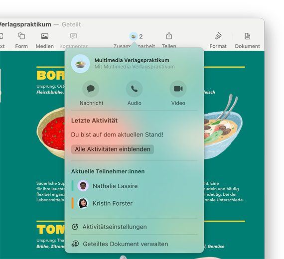 Einfaches Zusammen­arbeiten und Teilen von Dateien, Ordnern, Dokumenten und mehr, wenn du unterwegs bist. Schicke einfach einen privaten Link und lege fest, ob andere die Arbeit sehen, teilen oder bearbeiten können. Und mit Live Updates siehst du auch die Änderungen, die gerade gemacht werden.