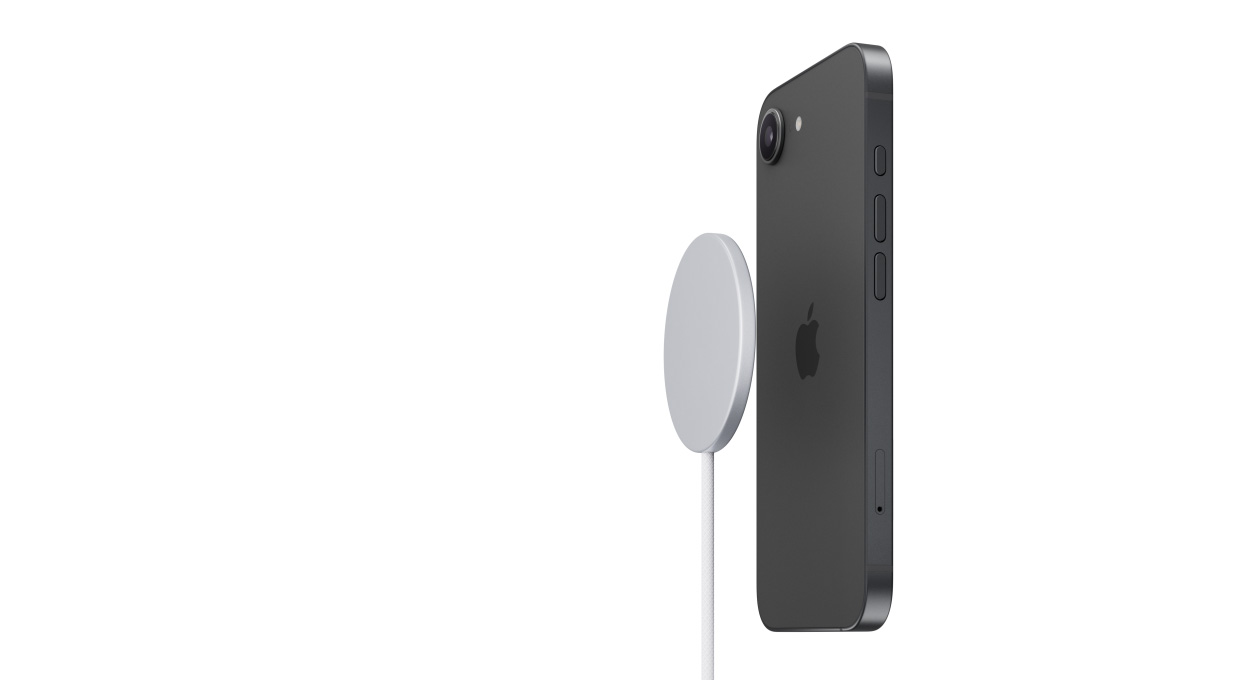 iPhone 17e leverer trådløs opladning op til 15 W – dobbelt så meget som iPhone 16e (7,5 W). Så det er nemt, praktisk og hurtigt at lade telefonen op, når den er løbet tør. Og med indbyggede magneter kan du let klikke en masse forskelligt tilbehør på, f.eks. opladere, etuier og meget mere.2