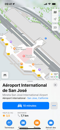 Passez à iOS 15, iPadOS 15 et macOS Monterey pour profiter des dernières fonctionnalités de Plans, y compris le globe interactif, les expériences en 3D pour des villes telles que San Francisco, Los Angeles, New York et Londres, les transports en commun à proximité, et plus encore.
