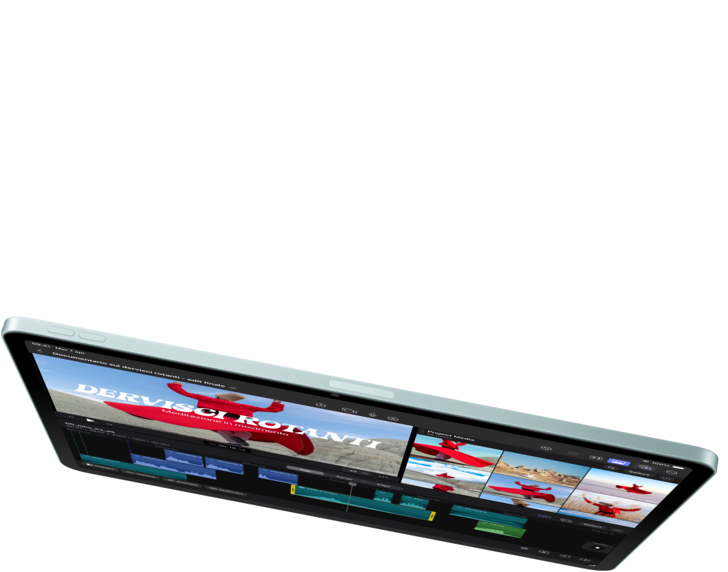 Il velocissimo chip M4 ha il 50% di memoria unificata in più, così il tuo iPad Air sarà un fulmine in tutto. È un concentrato di potenza al servizio dell’intelligenza artificiale: le funzioni che usi ogni giorno ti aiuteranno a fare quello che vuoi in modo ancora più rapido ed efficiente. E l’architettura della GPU ti offre prestazioni grafiche fenomenali per lavorare, guardare video in streaming, creare o giocare. In più, ha una batteria che dura tutto il giorno: un’efficienza niente male, no?4