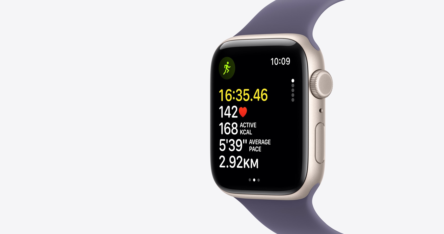 „Apple Watch SE 3“ – idealus tavo bėgimo partneris. Integruotas GPS ir pažangūs jutikliai seka atstumą, tempą ir širdies ritmą bei pateikia visus reikalingus rodiklius, kad neprarastum motyvacijos siekiant tikslų.