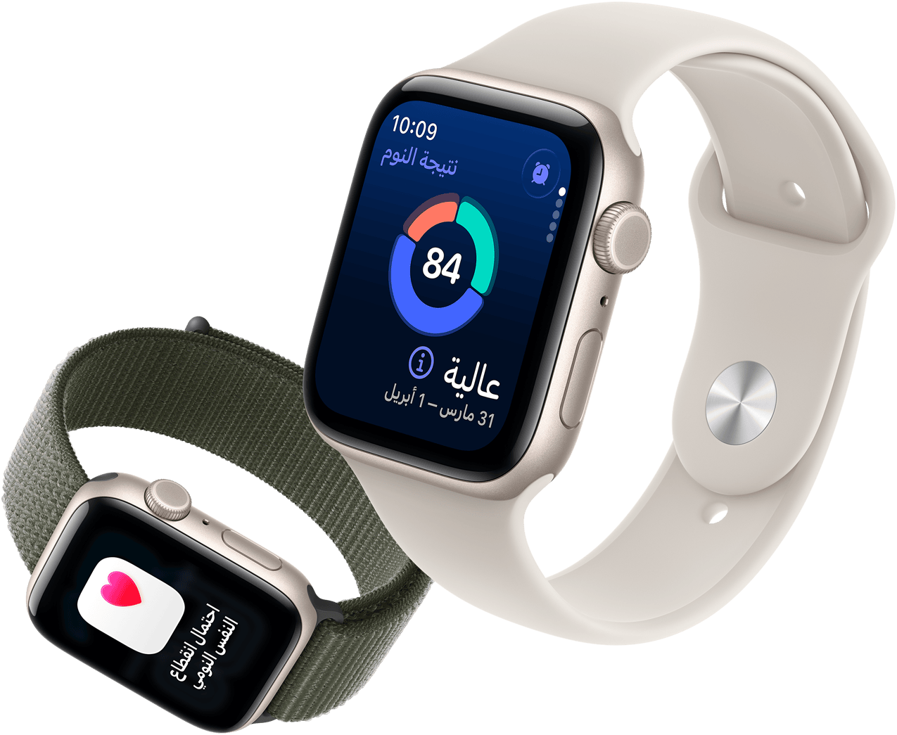 اطّلع بسرعة على بياناتك الصحية الليلية مباشرة من معصمك، بما فيها معدل نبض القلب ومعدل التنفس ودرجة حرارة المعصم ومدة النوم. وسيصلك إشعار في حال خرج أحد هذه القياسات عن نطاقه الاعتيادي.8